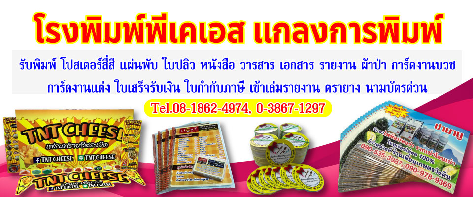 โรงพิมพ์พีเคเอส แกลงการพิมพ์ โรงพิมพ์ อำเภอแกลง ระยอง รับออกแบบงานพิมพ์ออกแบบกราฟฟิก อาร์ตเวิร์ค Artwork โดยมืออาชีพ ด้วยคอมพิวเตอร์ พิมพ์ด้วยระบบออฟเซ็ท 4 สี 08-5698-2814, 0-3867-1297