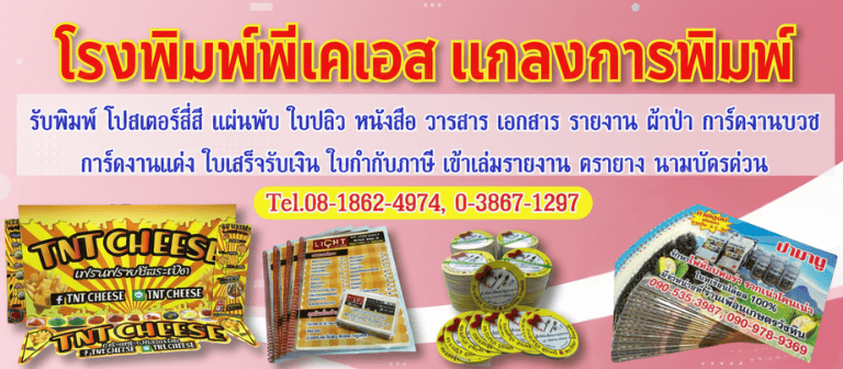 โรงพิมพ์พีเคเอส แกลงการพิมพ์ อำเภอแกลง ระยอง รับออกแบบงานพิมพ์ออกแบบกราฟฟิก อาร์ตเวิร์ค Artwork โดยมืออาชีพ ด้วยคอมพิวเตอร์ พิมพ์ด้วยระบบออฟเซ็ท 4 สี 08-5698-2814, 0-3867-1297